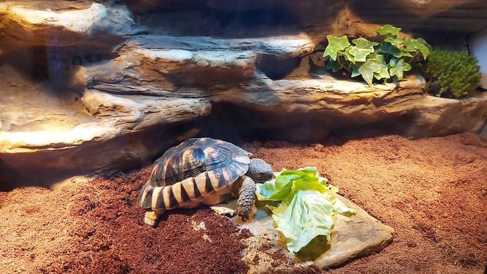 A teknős terrárium javasolt mérete minimum 100x50x40 de a kifejlett példányoknak a 120x60x40 szükséges. Nevelő terráriumra nincs szükségük, mert az életük első szakaszában nagyon gyorsan nőnek. Megfelelő táplásás mellett ahogy a képen is látszódik, egy év alatt a méretét meg is duplázhatja. Ez a növekedés roham aztán folyamatosan lassúl.
