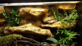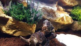 Igény szerint növényültetési lehetőséget építek a háttérbe. Bár néhány visszajelzés szerint ezt a növényevő állatok előszeretettel legelik le. A növények további bújó lehetőséget biztosítanak állataink részére, valamint a komfort érzetüket is javítja. A háttérbe ültetett növényeknél nagyobb figyelmet kell fordítani az öntözésre, mert hamarabb kiszáradnak. Ha a megrendelésnél teljes berendezéssel kéri a terráriumot az állat feltüntetésével a neki megfelelő növényeket válogatom össze.